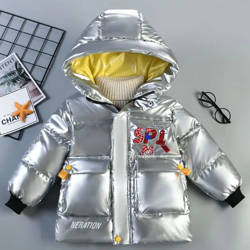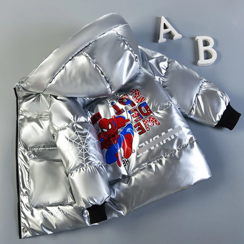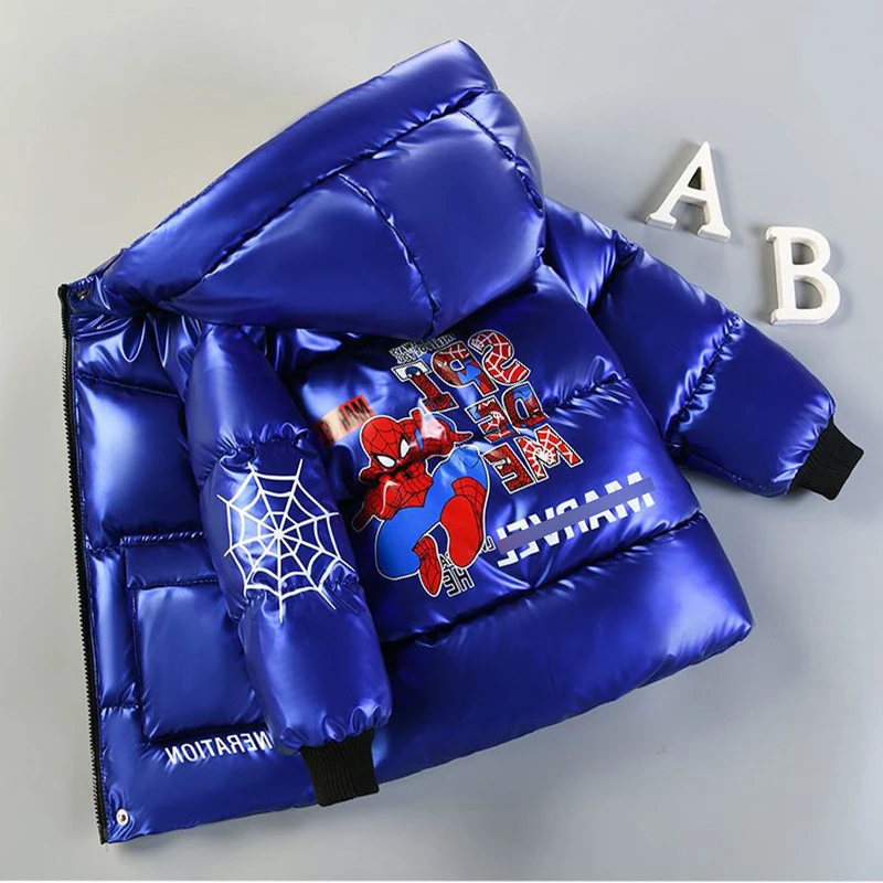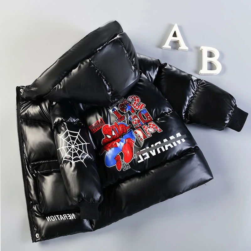 Spiderman Pattern Print Children's DownCoat 2025 Winter Baby Boys Thicken Padded Warm Hooded Down Jackets Kids Outdoor Parkas