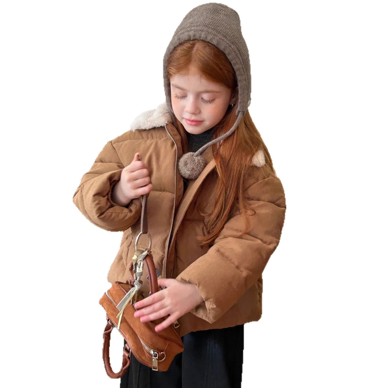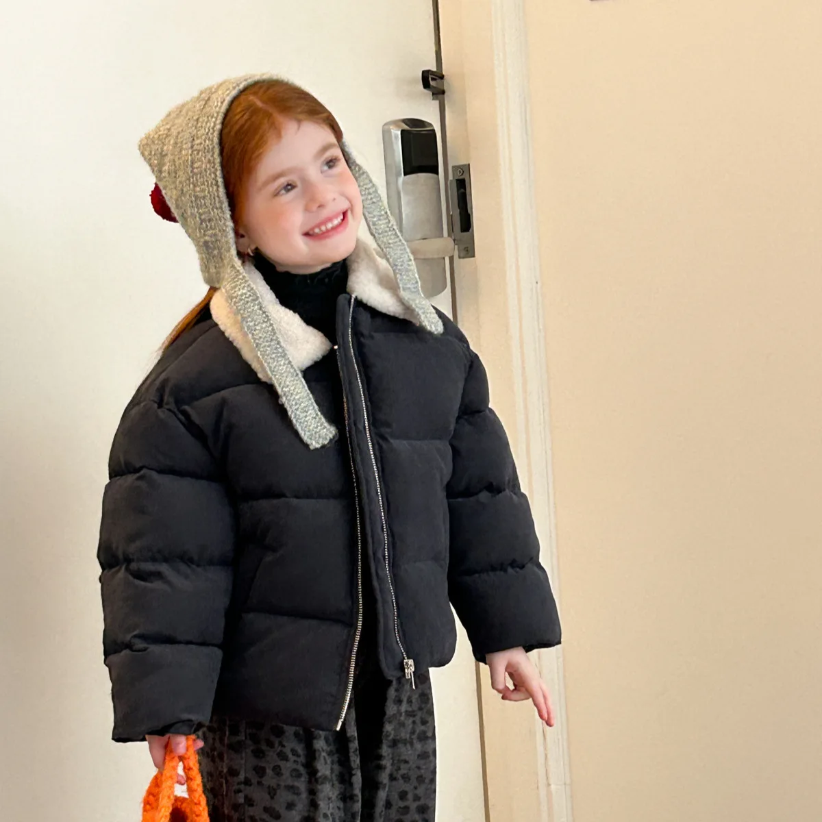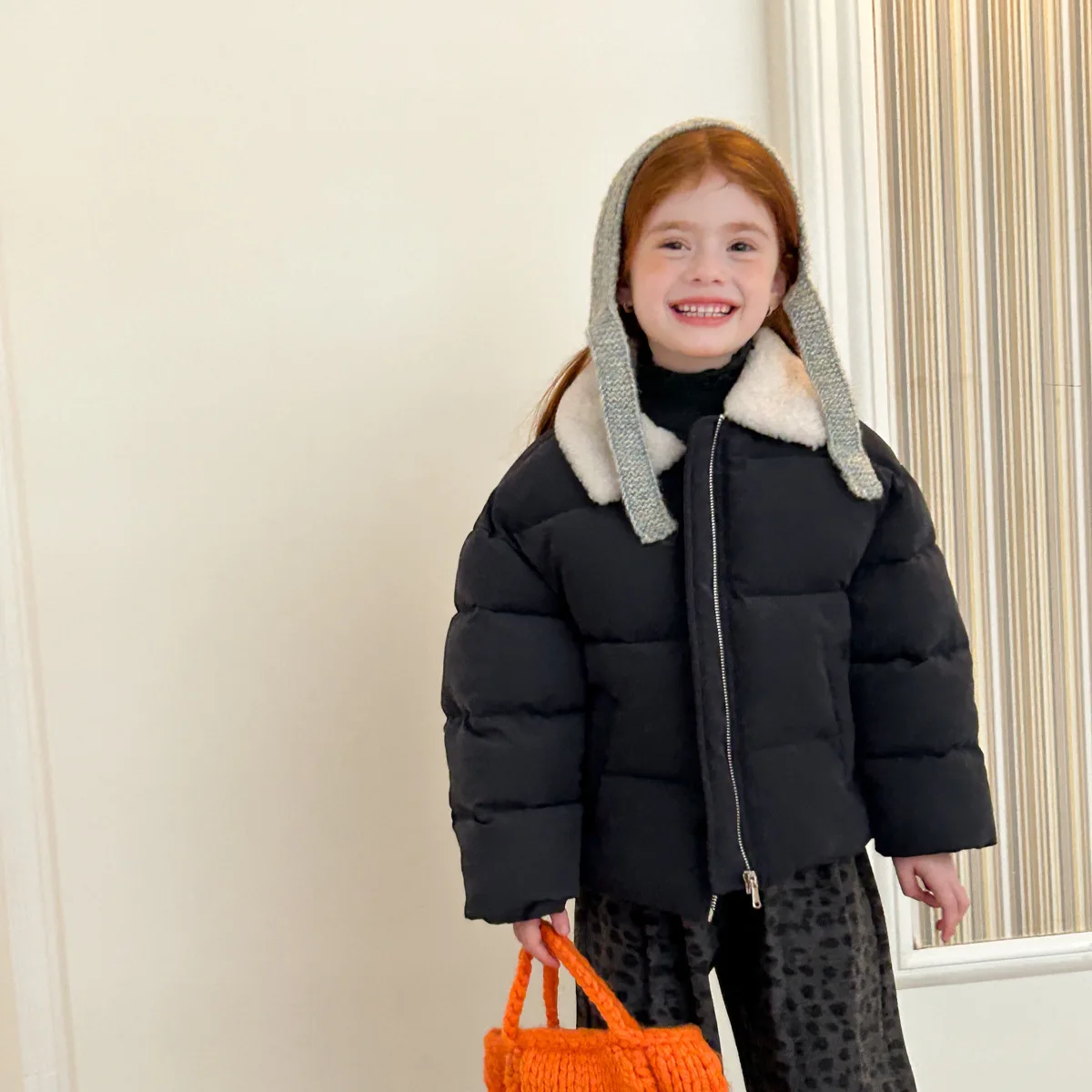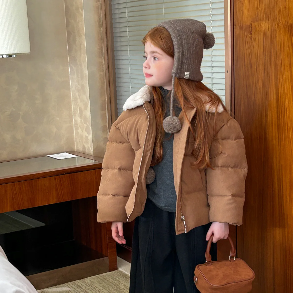 Girls Outerwear 2025 Winter Fashion Korean Version Lamb Wool Spliced Collar Cotton Clothing Warm Casual Fashionable Versatile