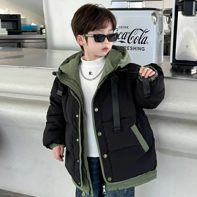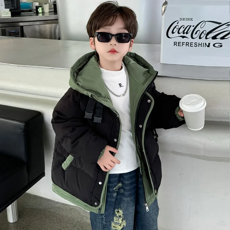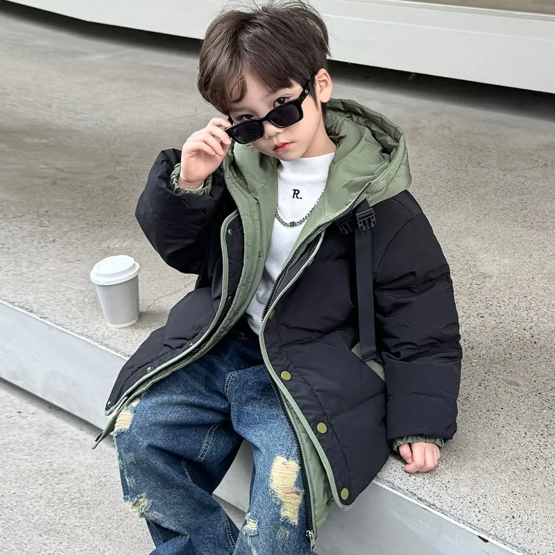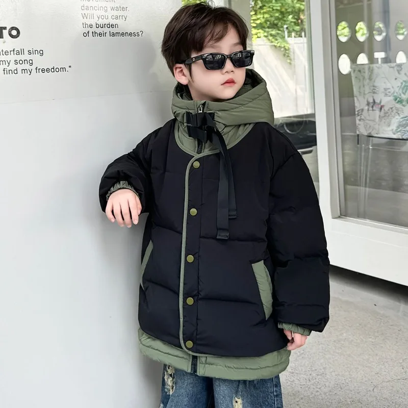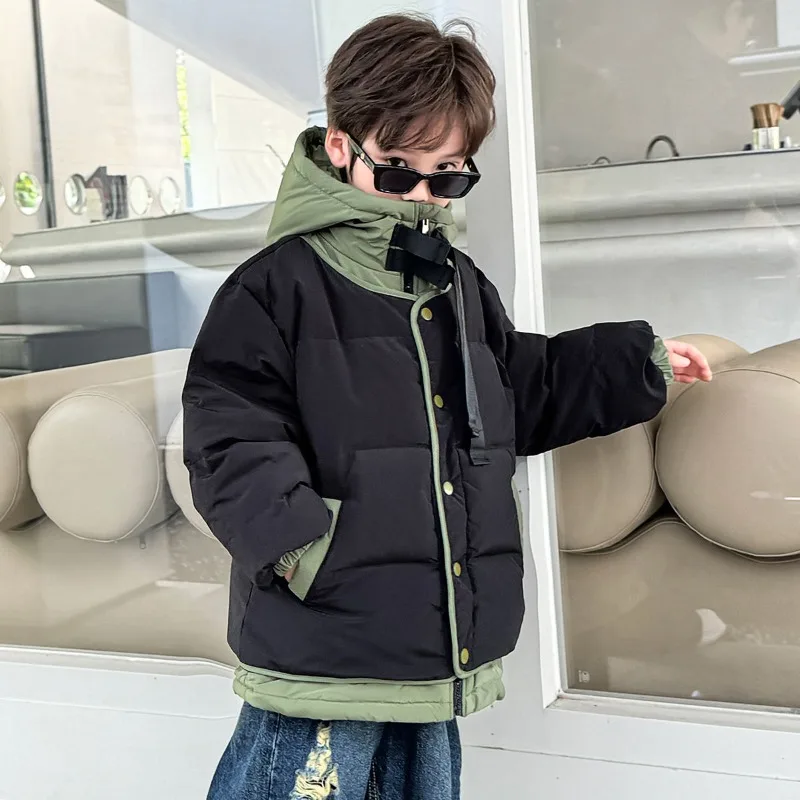 2025 New Boys Down Cotton Jacket Thickened Winter Coat for Big Kids - Trendy Winter Outerwear with Warmth & Style
