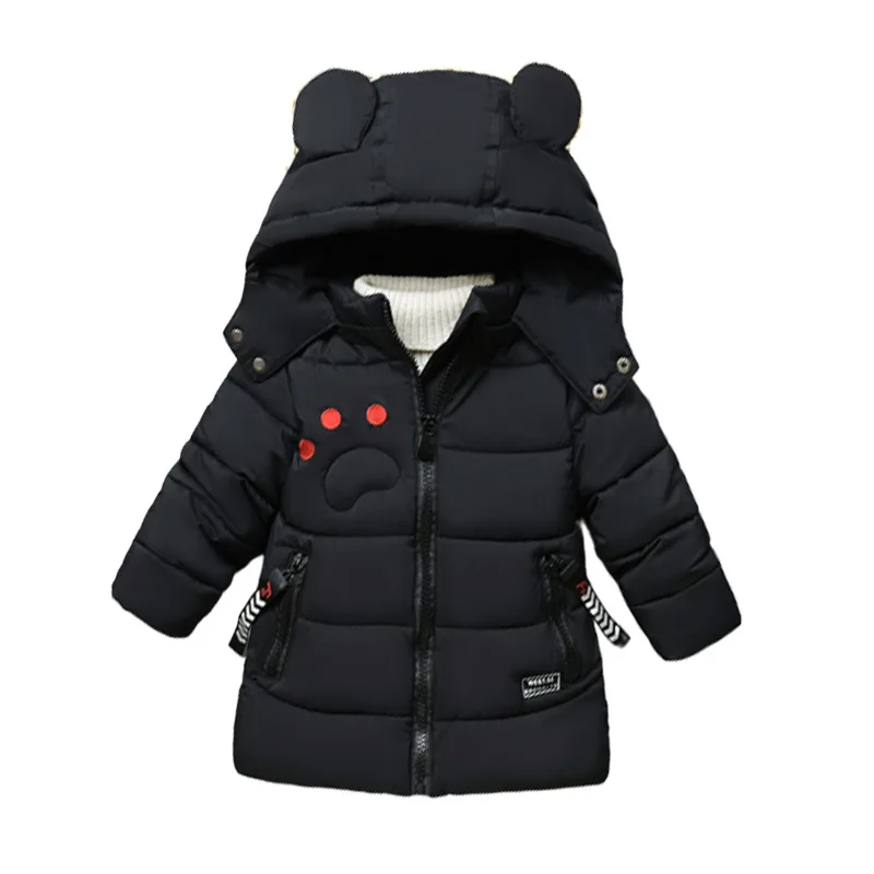 Teenager Winter Black Cotton Down Jacket Keep Warm Hooded Zipper Outerwear Girl Coat Birthday Gift 2-11Y New year Kids Clothes