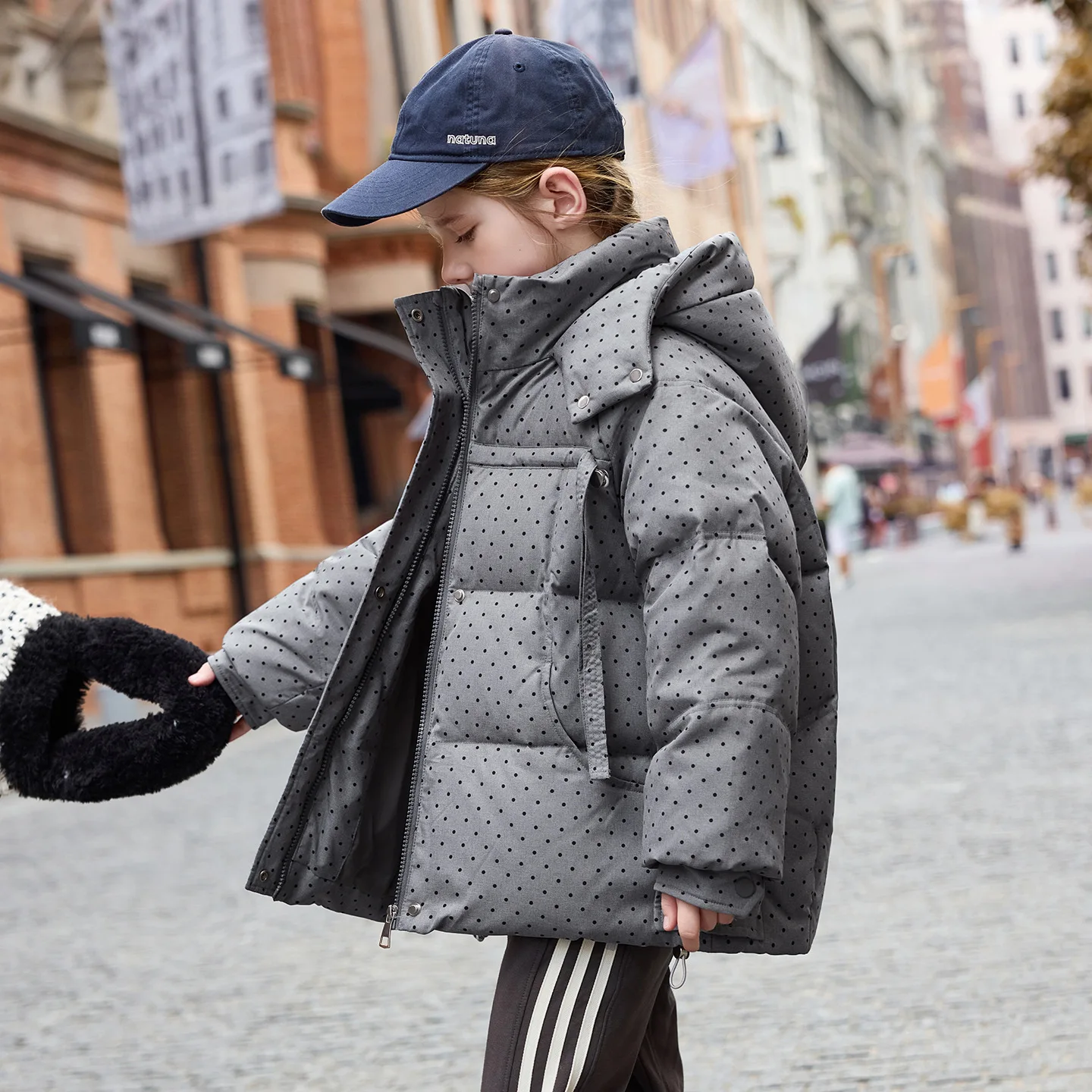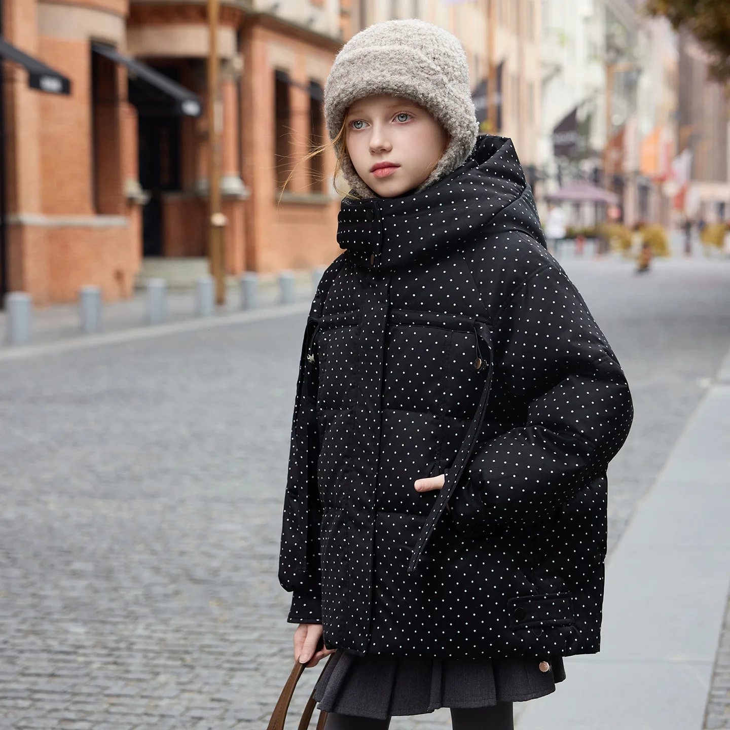 Winter Kids Girls White Duck Down Jackets Dot Printed Hooded Thicken Puffer Jackets For Children 4-12Y Boys Warm Outerwear Coats
