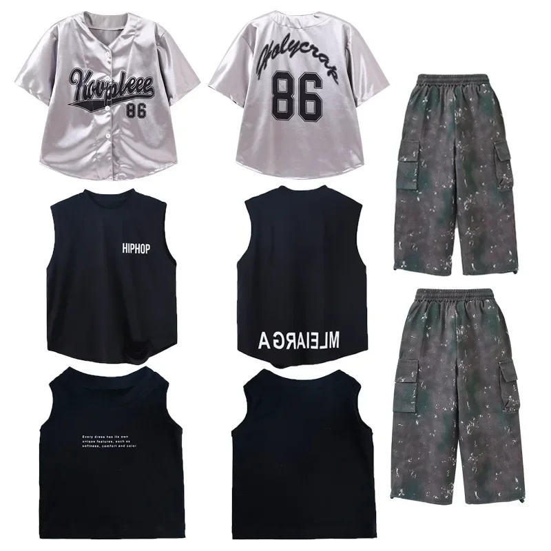 Girls Hip Hop Sweet Crop Top puff Skirts Cargo Pants Child Streetwear Girl Group Costumes Kids K-pop Street Dance Clothes Sets