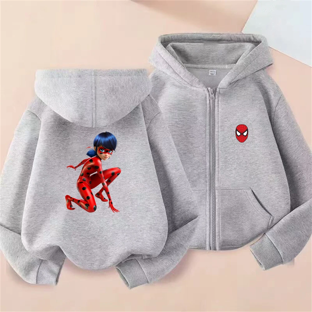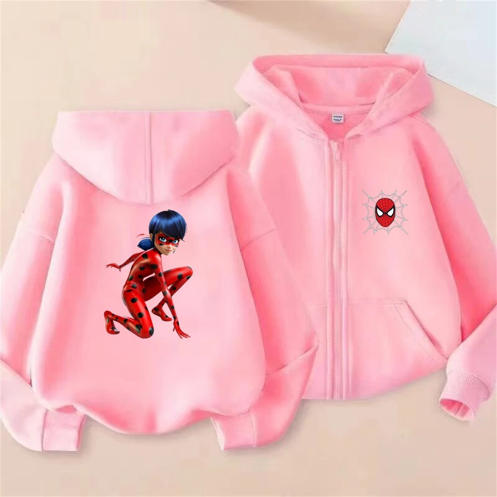 Spider-Man Black Child Hoodies Zipper coat Girls Pink Sweatshirt Casual Hooded boy Autumn Winter new Tops cartoon print