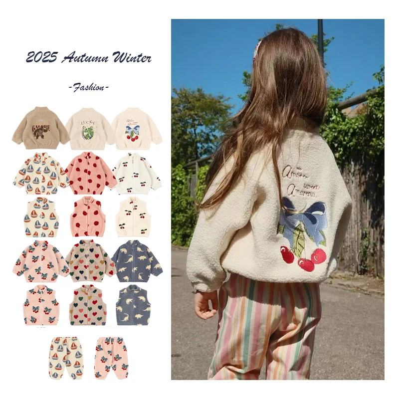 2025 Winter Kids Coat Sherpa Vest Jacket Pants Boys Girls Fashion Puffer Vest All Over Print Warm Sleeveless Jacket Outdoor