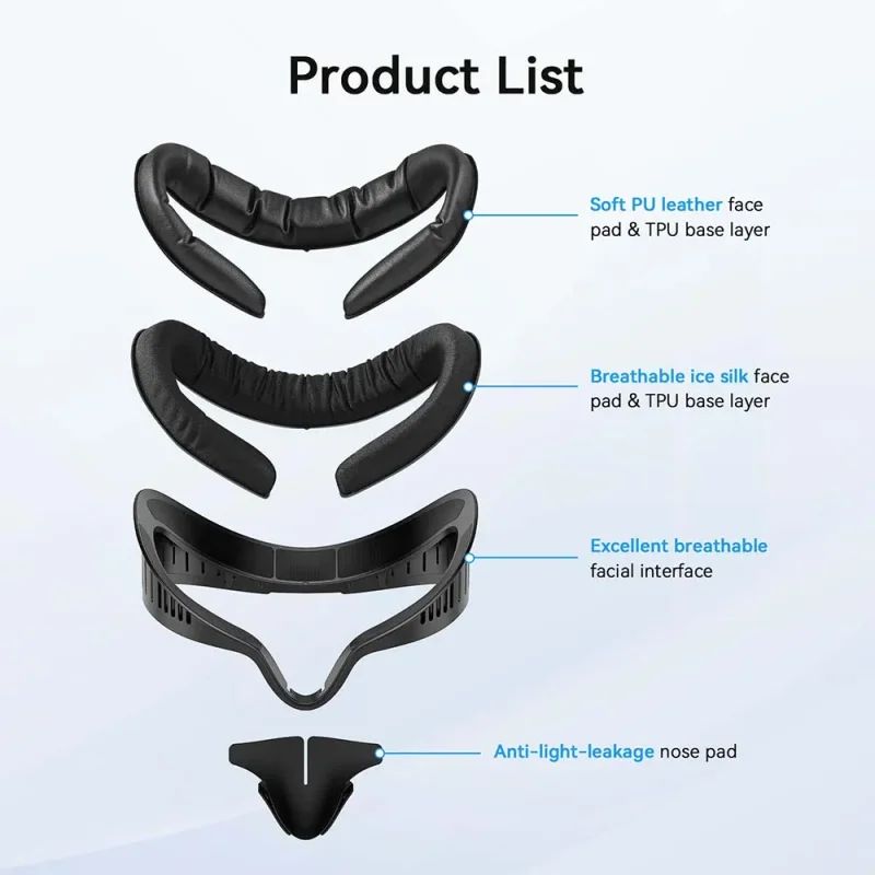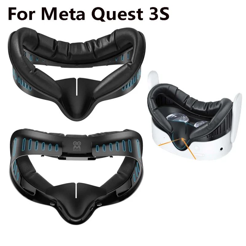 AMVR 3-In-1 Face Mask Cover for Meta Quest 3S PU Leather Facial Interface Replacement Ice Silk Pad Upgraded Version VR Parts