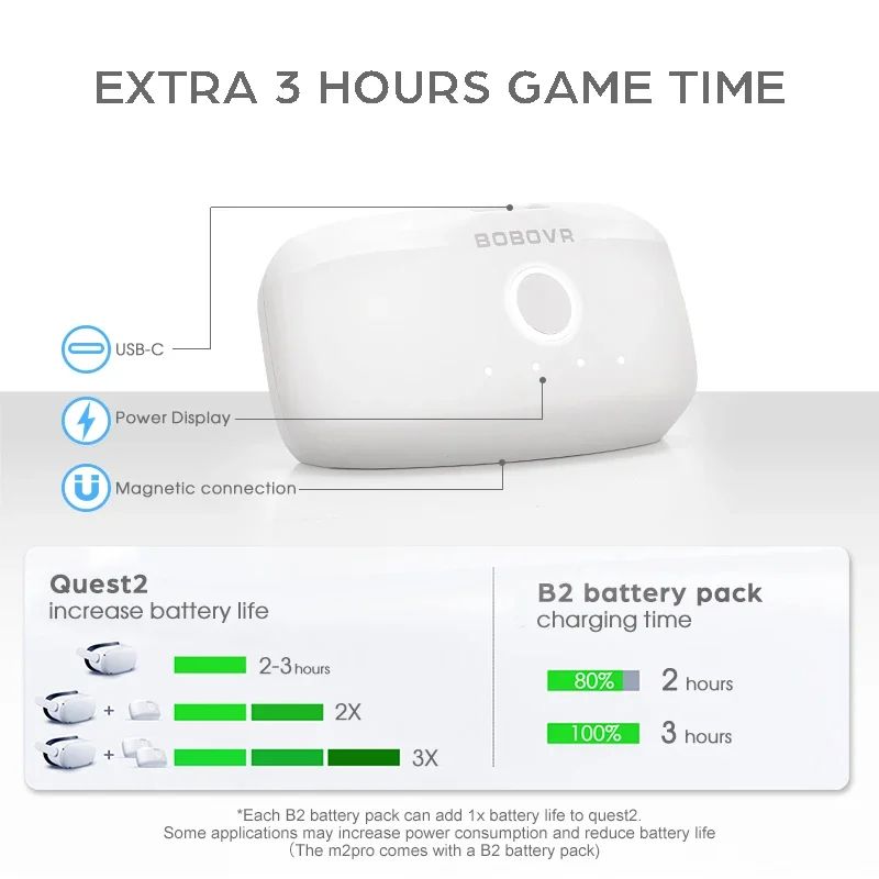 BOBOVR B2 Extended Power Battery Pack for Quest 2: Seamless Magnetic Integration