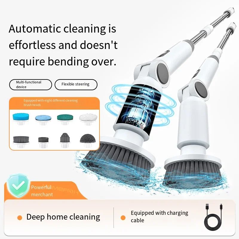HOMFISH 2025 NEW 8-in-1 Electric Spin Scrubber Wireless Cleaning Brush Waterproof Bathroom Scrubber Adjustable Extension Handle